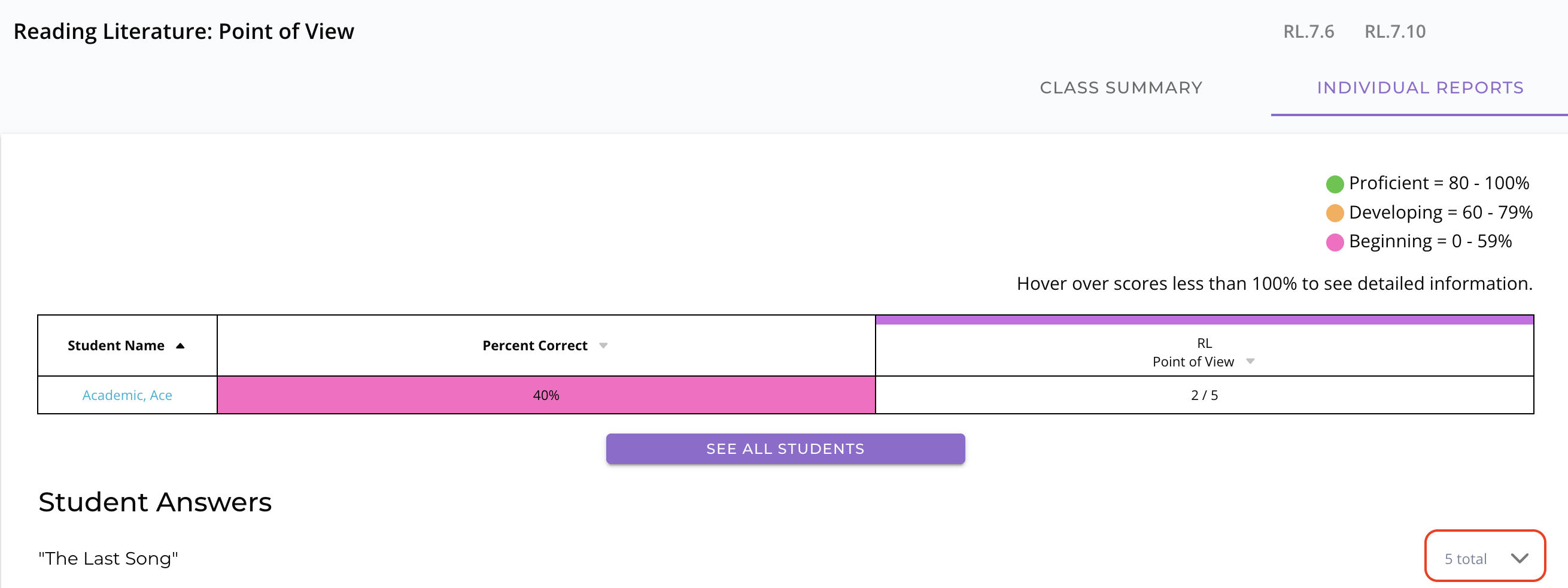 - Under "Student Answers," click the “__ total” arrow (bottom right).